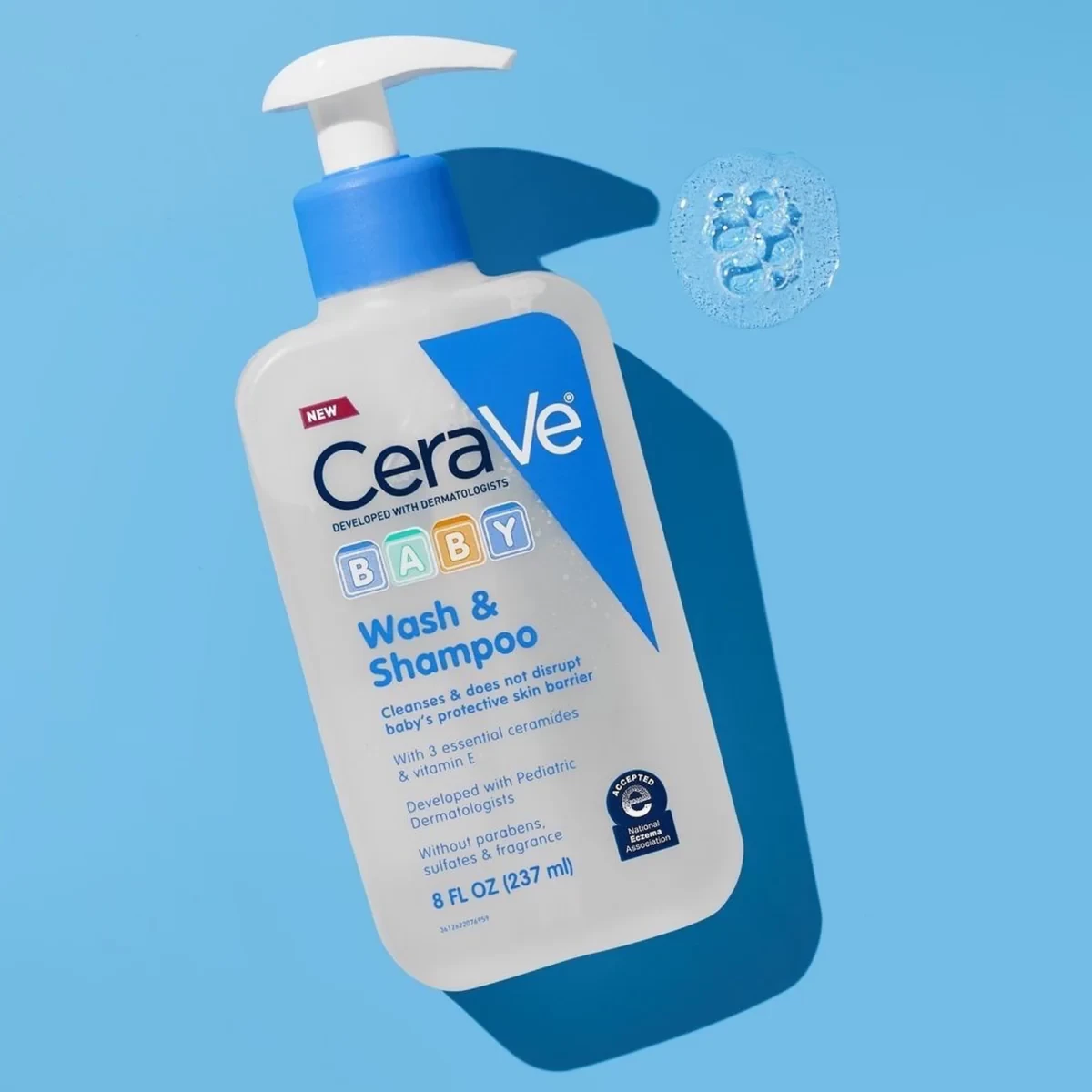 CeraVe Baby Wash & Shampoo was developed with pediatric dermatologists to gently cleanse your baby’s skin and hair with a tear-free, gentle lather that helps make bath time easy and fun. Our gentle baby body wash and baby shampoo is designed to not disrupt baby’s thinner, delicate, skin barrier by combining a fragrance-free, soap-free, tear-free formula with three essential ceramides that leaves skin feeling soft and soothed. Enhanced with hyaluronic acid, vitamin E and three essential ceramides, CeraVe Baby Wash & Shampoo gently cleanses for clean, nourished-looking skin.