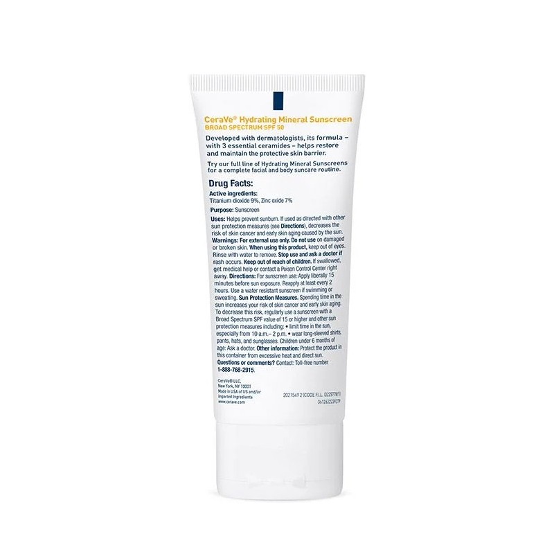 Valid within 3 days of registrationProtect your skin from the sun with a gentle, yet effective face lotion. CeraVe Hydrating Mineral Sunscreen Face Lotion with Broad Spectrum SPF 50 is a 100%-mineral, oil-free sunscreen with titanium dioxide and zinc oxide that forms a protective barrier on your skin’s surface to help reflect the sun’s UVA and UVB rays without irritating sensitive skin. Our formula has three essential ceramides to help restore the skin’s barrier and provide long-lasting hydration, as well as niacinamide to help calm your skin. It has been awarded the National Eczema Association Seal of Acceptance and the Skin Cancer Foundation Daily Use Seal of Approval.