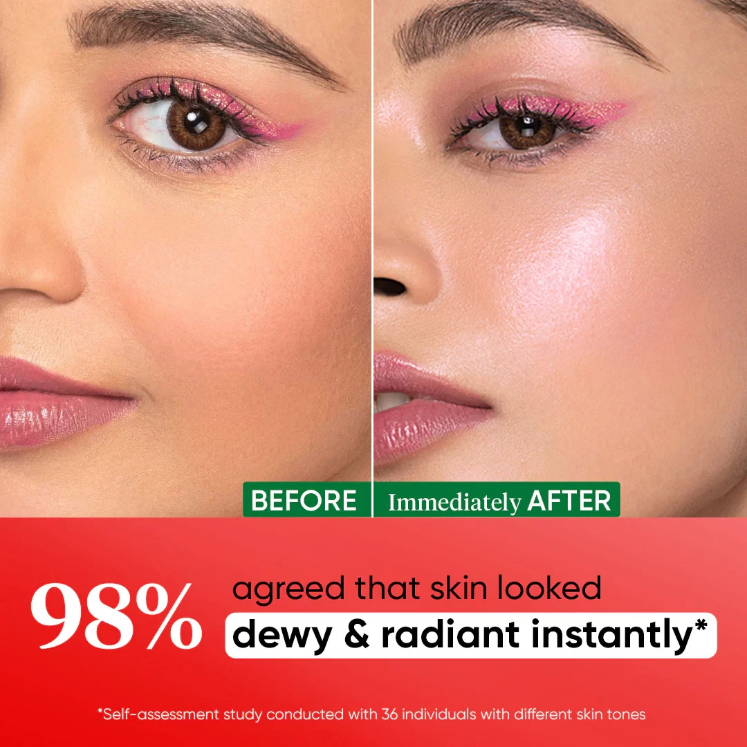 Dot the cream on a clean face , Massage gently seamless blending , Follow up with SPF during daytime , Use it as a liquid highlighter or mix it with your foundation or liquid blush for that extra sheen.