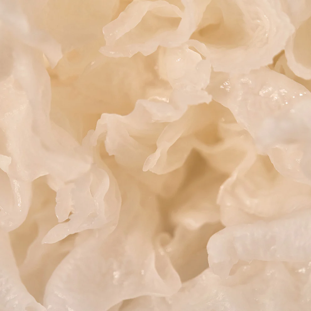 Low molecular weight plant-based collagen, the main component of snow mushroom extract, is deeply absorbed into the skin and delivers long-lasting moisture.