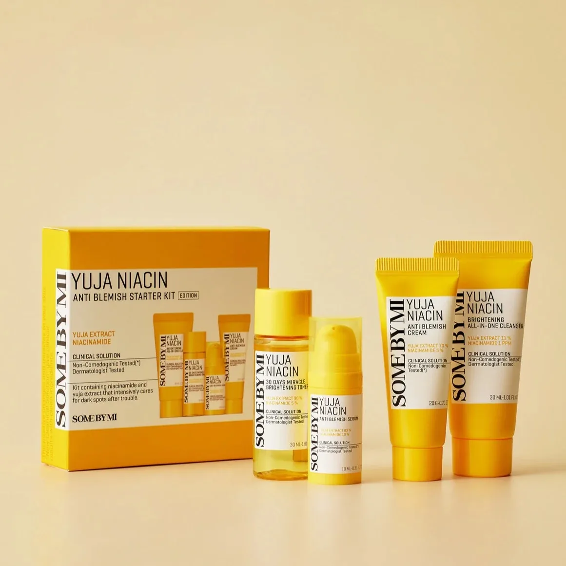 Yuja Niacin 30 Days Brightening Starter kit Contains : Yuja toner(30ml) + Yuja serum(10ml) + Yuja gel cream(30ml) + Yuja sleeping mask(20g)