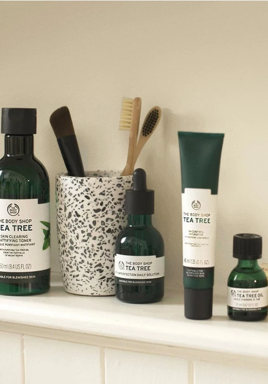 Our Tea Tree Skin Clearing Mattifying Toner infused with potent tea tree oil, purifies and tones in one step. Use after cleansing to remove any residual traces of make-up and impurities, which can clog the pores. With shake-to-activate mattifying powders, our toner minimises the appearance of pores and leaves skin feeling clean, toned, refreshed and visibly clearer.
